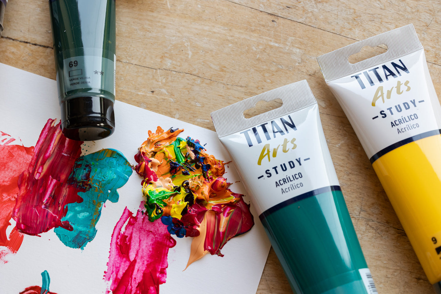 Con los acrílicos TITAN Arts Study obtendrás una buena cobertura y lograrás diversidad de texturas y efectos. De base agua, al secarse se vuelve impermeable y permanente. Se diluye con agua o con cualquiera de nuestros médiums acrílicos. Generalmente, se utiliza para pintar sobre lienzos de lino y algodón. También puede aplicarse sobre superficies porosas como papel, cartón, madera, piedra, arcilla, yeso...
