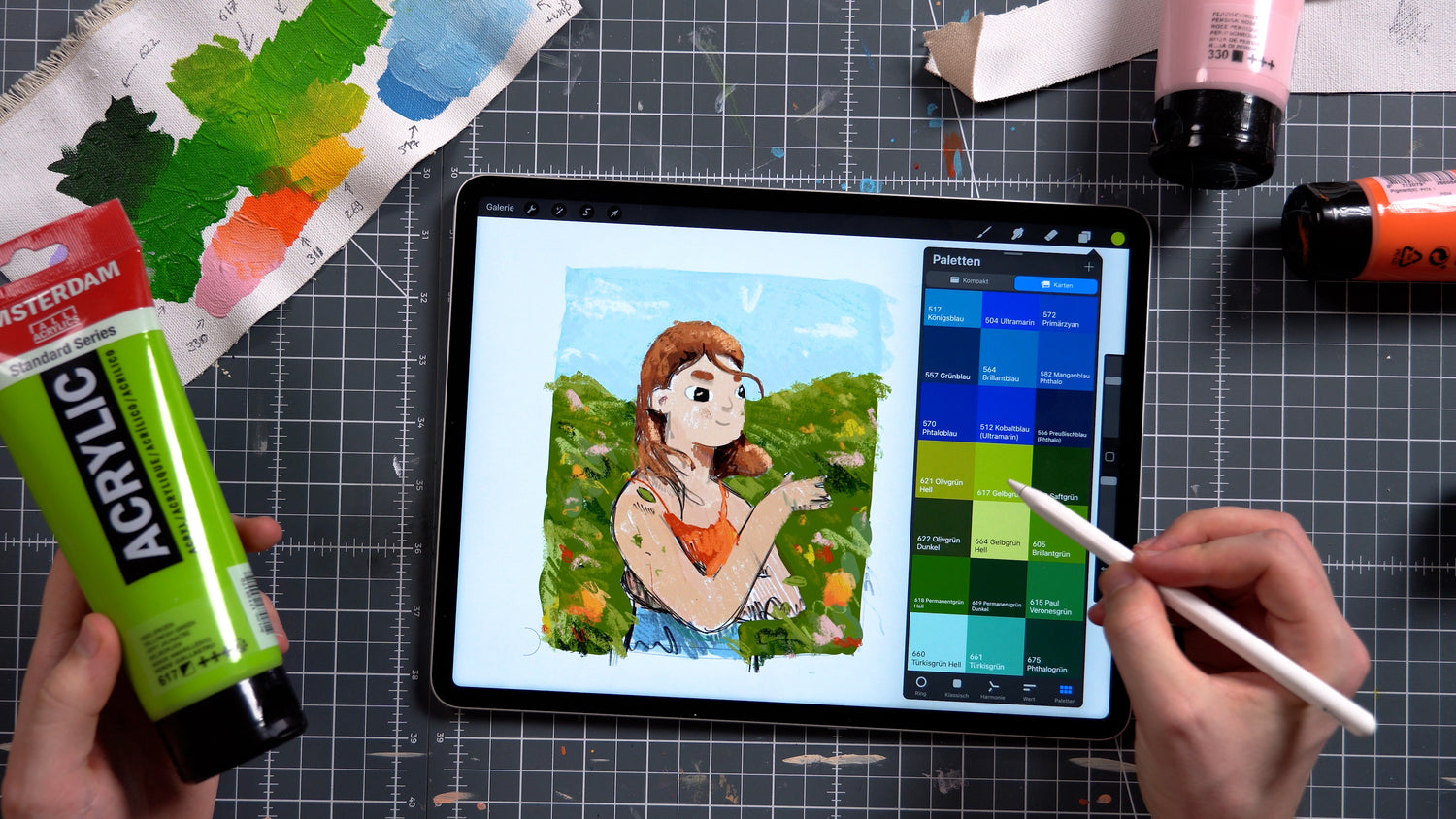 Toegang tot het volledige palet van de Amsterdam Standard en Expert Series en gebruik je favoriete acrylkleuren digitaal in Procreate. Of je nu ideeën aan het testen bent of definitieve ontwerpen aan het schetsen, deze kleuren zorgen voor een naadloze overgang van scherm naar doek.
